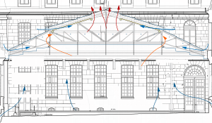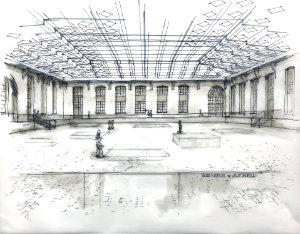 L'étude de projet prévoit la restauration des espaces du MNVT et la mise en place des équipements techniques. Les façades extérieures des ailes concernées seront restaurées avec adaptation des menuiseries aux contraintes thermiques. Une attention particulière est portée à la cour des Cuisines et à sa verrière, élément majeur de l'exposition qui est prévue intégralement restaurée. Les contraintes de sécurité et thermiques imposent de modifier les vitrages pour assurer le filtrage des rayons, indispensable à la conservation des véhicules exposés. La verrière permettra d'assurer le désenfumage et la régulation thermique du volume de la cour. Au sol un plateau de 800 m² incorporant la technique et la scénographie sera créé pour les expositions. Sébastien Olivet, architecte, chef de projet pour l'agence Pierre Bortolussi ACMH a assuré le suivi des études.